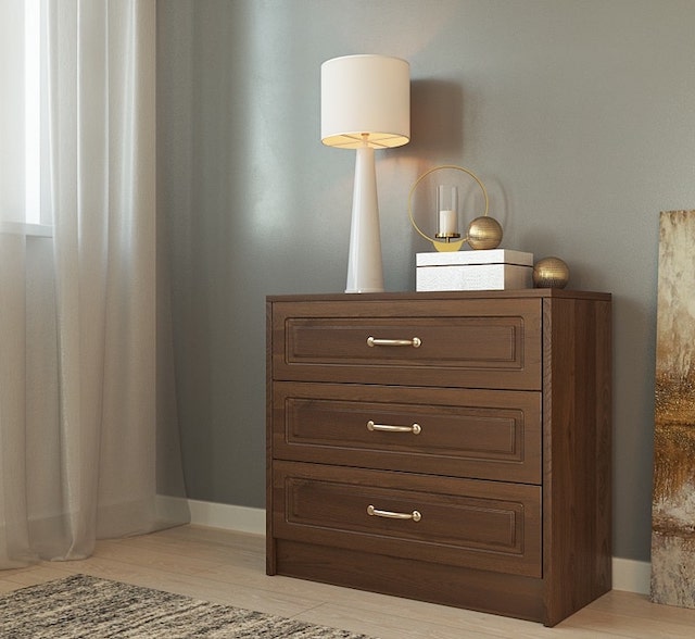 Комод К1 Лев оснащен тремя вместительными выдвижными ящиками на роликовых направляющих, что обеспечивает плавное и бесшумное открывание. Эти ящики идеально подходят для хранения одежды, белья, документов и других личных вещей. Комод в спальню дерево станет отличным решением для тех, кто ценит порядок и удобство.