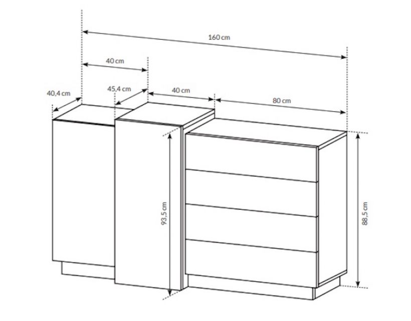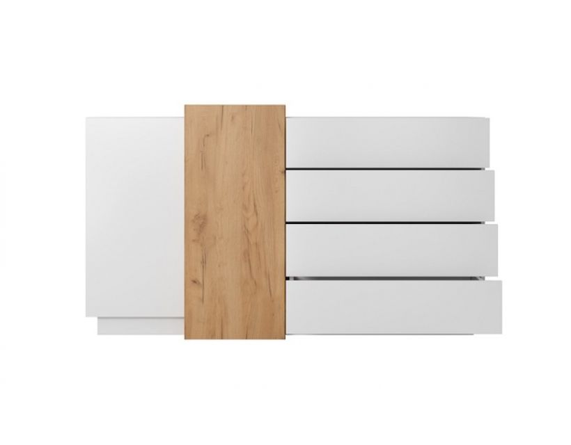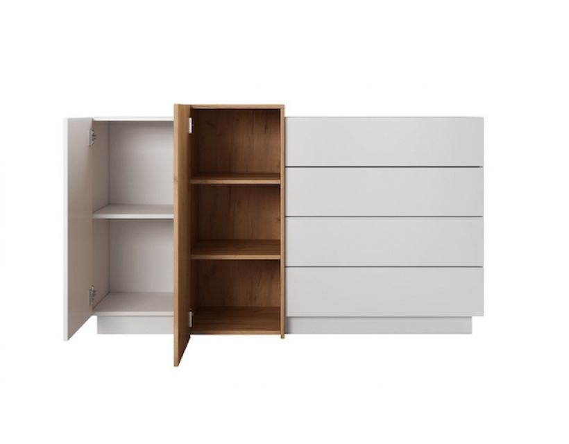 Цей 2-дверний комод обладнаний чотирма просторими ящиками, що дозволяє зручно організувати ваші речі. Від одягу до аксесуарів – все буде гаразд і під рукою. Завдяки своїй продуманій конструкції комод не тільки виглядає стильно, але й забезпечує максимальну функціональність у використанні.