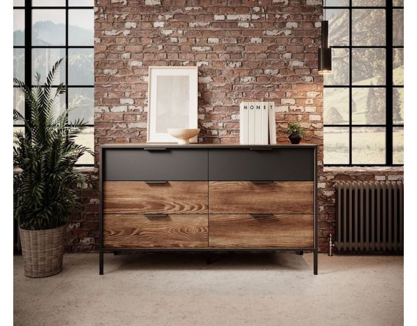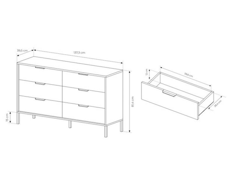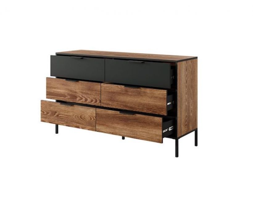 З шістьма просторими ящиками, комод забезпечує достатньо місця для зберігання одягу, постільної білизни або інших важливих речей. Ви зможете легко організувати свій простір та підтримувати лад у будинку, не витрачаючи багато часу на пошук необхідних предметів. Кожна скринька оснащена надійними механізмами, що забезпечують легке та плавне відкриття.