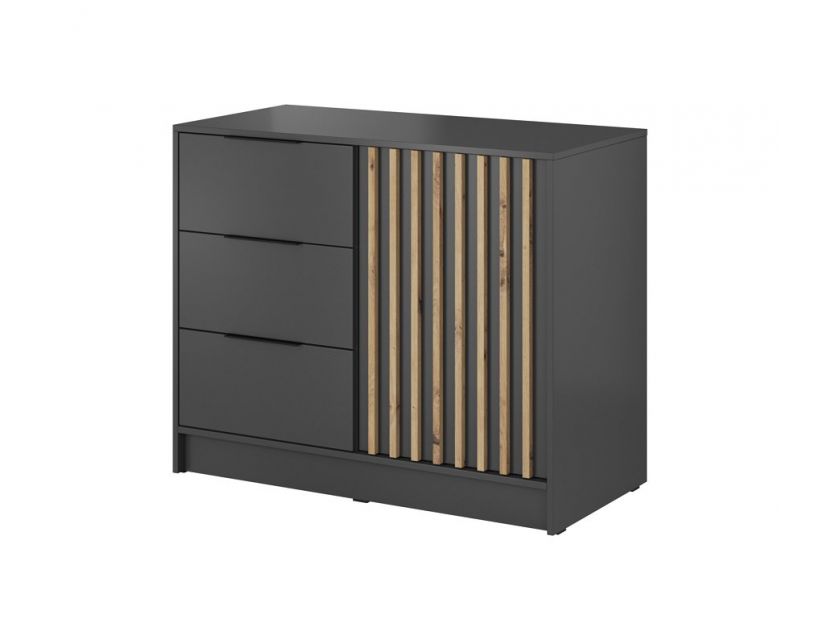 Шукаєте ідеальне рішення для організації простору у вашому будинку? Комод Perfect Home Неллі стане чудовим доповненням до вашого інтер'єру. Завдяки сучасному дизайну у кольорах графіт та дуб артизан цей комод не тільки виглядає стильно, але й легко вписується у будь-який стиль оформлення. Його елегантні лінії та натуральні відтінки створюють атмосферу комфорту та затишку.