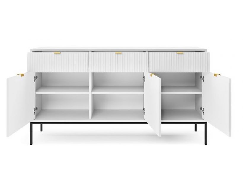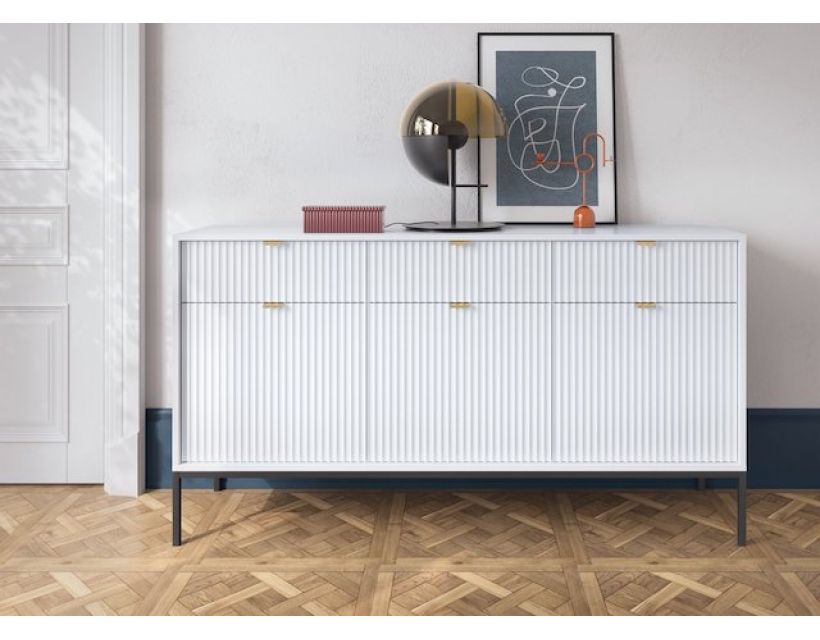 Відкрийте для себе ідеальне поєднання стилю та практичності з комодом Perfect Home Нова. Цей 3-дверний комод із трьома ящиками стане яскравим акцентом будь-якої кімнати, надаючи їй сучасного вигляду. Чистий білий колір та елегантні чорні ніжки створюють враження легкості та витонченості, що робить його чудовим вибором для будь-якого інтер'єру. Комод не лише гарний, а й надзвичайно функціональний. Завдяки просторим ящикам та відділенням ви зможете з легкістю організувати свої речі, зберігаючи порядок у кімнаті. Його зручний дизайн дозволяє використовувати комод у спальні, вітальні або передпокої, забезпечуючи вам необхідний простір для зберігання. Комод Perfect Home Нова стане не лише функціональним рішенням, а й вишуканою деталлю вашого інтер'єру. Замовте його сьогодні та насолоджуйтесь комфортом та елегантністю у кожному дні!