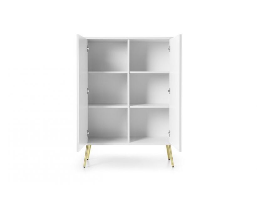 Відкрийте для себе елегантність та сучасний дизайн з комодом Perfect Home Зова. Цей 2-дверний комод не тільки прикрасить інтер'єр вашого будинку, але стане ідеальним рішенням для зберігання речей. Його білий колір надає легкості, а золоті ніжки надають розкішний акцент, роблячи цей меблевий елемент справжньою знахідкою для стиль, що цінують.