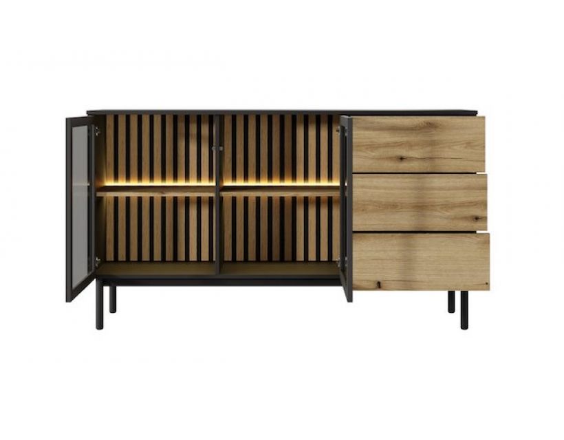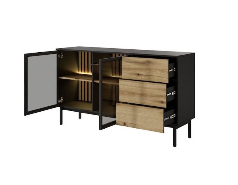 Відкрийте для себе елегантність та функціональність комода з підсвічуванням Perfect Home Ланг. Цей стильний 2-дверний комод із трьома ящиками не тільки доповнить інтер'єр вашого будинку, але й забезпечить зручне зберігання речей. Чорний корпус у поєднанні з дубом евок створює сучасний вигляд, який впишеться в будь-який дизайн. Завдяки вбудованому підсвічуванню, ви зможете легко знайти необхідні речі навіть у темряві. Комод забезпечує не лише естетичне задоволення, а й практичність, адже ящики мають достатньо місця для зберігання всього необхідного: від одягу до дрібниць. Висока якість матеріалів гарантує довговічність та надійність використання.