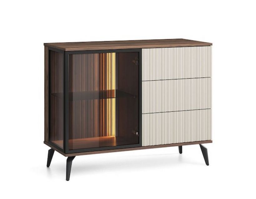 Откройте для себя элегантность и функциональность с комодом Вичи / Vici KSZ103. Этот стильный 1-дверный комод с 3 ящиками станет идеальным дополнением вашего интерьера, придавая ему современный вид. Изготовленный из высококачественных материалов в цветовой гамме орех/кашемир, он не только украсит вашу комнату, но и обеспечит надежное хранение вещей. Она подчеркнет текстуру дерева и элегантность дизайна, позволяя вам наслаждаться каждым моментом, проведенным в вашем доме. Комод Вичи / Vici KSZ103 – это не просто мебель, а настоящий акцент вашего интерьера.
