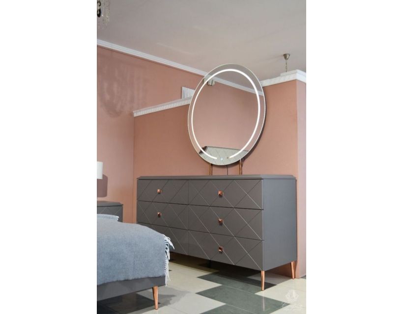Комод Толедо - чудове доповнення інтер'єру дитячої кімнати або ж Вашої спальні. Великим плюсом є те, що комод не займе багато місця. Цей практичний предмет меблів точно вигідно заощадить вільне місце приміщення, додасть розкоші та респектабельності. Завдяки сучасному, стильному та вишуканому дизайну, легко впишеться у будь-який інтер'єр, гармонійно поєднуватиметься з меблями різного стилю.