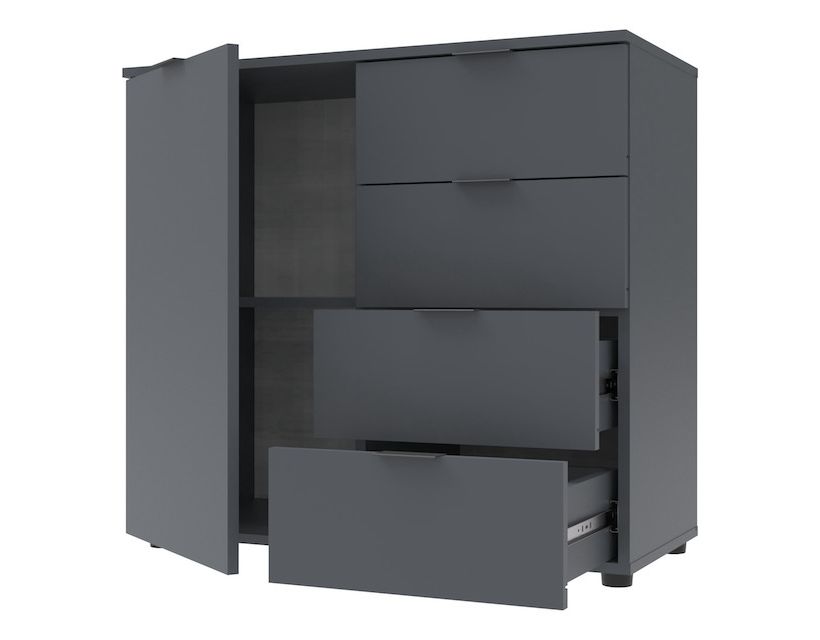 Шукаєте ідеальне рішення для організації простору у вашій вітальні? Комод Doros Рон поєднує сучасний дизайн та практичність, що робить його незамінним елементом меблів. Його елегантний графітовий колір легко впишеться в будь-який інтер'єр, а компактні розміри забезпечать оптимальне використання простору без зайвого клопоту. Завдяки продуманій конструкції та містким ящикам, ви зможете з легкістю організувати всі необхідні предмети, не турбуючись про заворушення. Виберіть Doros Рон і насолоджуйтесь комфортом та затишком у вашій вітальні!