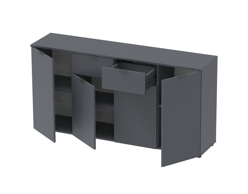 Шукаєте ідеальне рішення для організації простору у вашій вітальні? Комод Doros Рон 7 стане справжньою знахідкою! Завдяки своїм компактним розмірам він легко впишеться в будь-який інтер'єр, надаючи йому сучасного вигляду. Графітовий колір надає елегантності та підкреслює стиль вашого будинку, а якісні матеріали забезпечують довговічність та надійність.