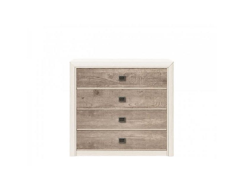 Комод у вітальню ВМК (БРВ) Коен 2 KOM4S (телескопи) Сосна арізонська + Дуб корабельний Пропонуємо до вашої уваги комод Коен 2 KOM4S від українського виробника ВМК (БРВ). Цей предмет меблів поєднує у собі функціональність та стильний сучасний дизайн. Комод виконаний у стриманій палітрі кольору - легка сосна арізонська в поєднанні з темним корабельним дубом дуже гармонійно виглядають в одному виробі. Корпус та фасад комоду виготовлені з якісного ДСП. Характеристики: Висота: 94 см; Глибина: 40 см; Довжина: 103 см. Це робить його ідеальним вибором для будь-якого простору незалежно від його параметрів. У комоді передбачено 4 висувні ящики, які забезпечать масу місця для зберігання ваших речей. Підкреслити стиль та зручність використання комоду дозволяє якісна фурнітура. Комод оснащений телескопічними напрямними повного висування, що забезпечує легкість та плавність відкривання ящиків.