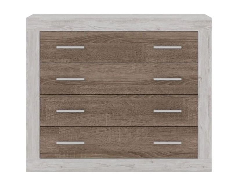Комод до спальні Гербор Сара KOM4S Сосна каньйон/Дуб сонома трюфель Комод Сара KOM4S від українського виробника Гербор (Gerbor) - це чудове поєднання сучасного дизайну, функціональності та міцності. Стильний та місткий виріб чудово впишеться в інтер'єр, виконаний у стилі сучасності, скандинавському чи мінімалізмі. Комод має 4 місткі висувні ящики, які гармонійно поєднуються із загальним дизайном виробу. Всі ящики обладнані роликовими напрямними, що забезпечує плавне та легке відкривання та закривання. Комод має двоколірне виконання: сосна каньйон та дуб сонома трюфель, що надає йому особливого шарму. Корпус та фасади комода виготовлені з якісної ДСП, що забезпечує міцність та довговічність виробу. Характеристики: Довжина: 98 см; Глибина: 40 см; Висота: 82 см. Стійкий до зношування, практичний та місткий комод Сара KOM4S від Гербор - ідеальне рішення для вашого будинку. Модель входить до колекції "Сара", яка відрізняється своєю простотою та лаконічністю, але при цьому не поступається у функціональності.