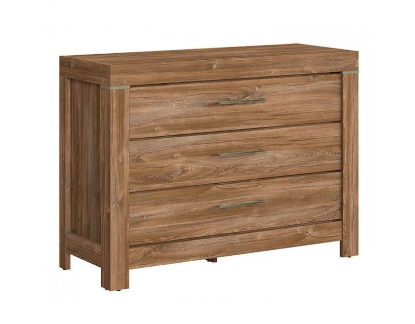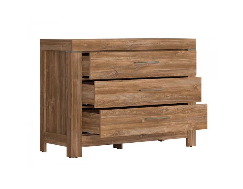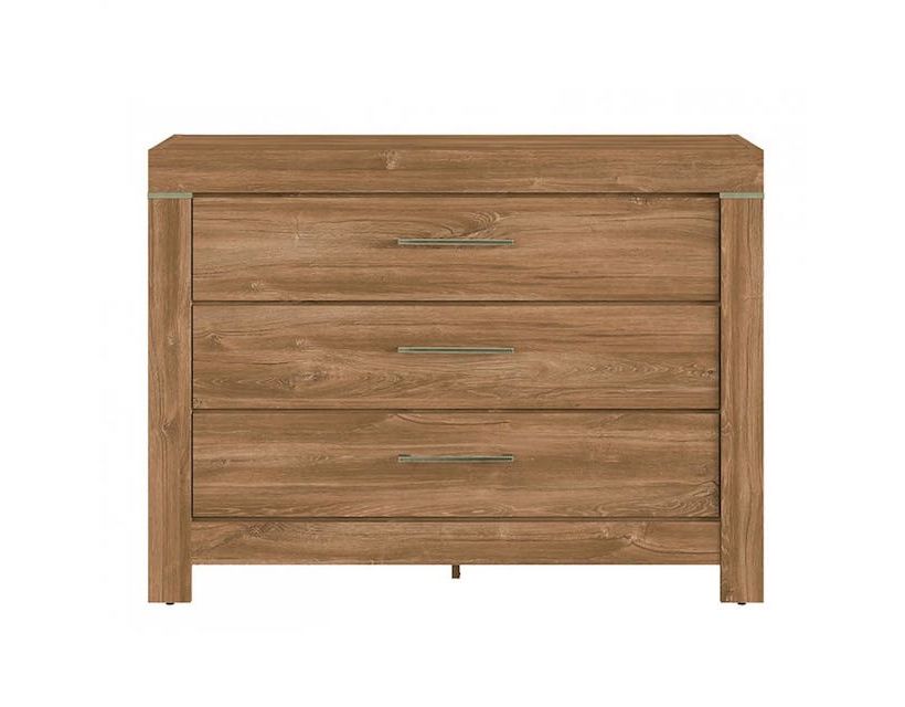Комод у спальню ВМК (БРВ) Герман KOM3S/9/12 (телескопи) Дуб стерлінг Комод Герман KOM3S/9/12, виготовлений у кольорі дуба стерлінга, це виріб українського виробництва від марки ВМК (БРВ). Це якісний та стильний предмет меблів у класичному стилі, який стане ідеальним доповненням до інтер'єру вашого будинку. Виріб виготовлений із міцного та надійного матеріалу - корпус виконаний із ДСП, а фасад із МДФ. Розміри комоду складають: довжина - 115 см, глибина - 45 см, висота - 85 см. У ньому є три висувні ящики, що забезпечують зручне зберігання ваших речей. Комод обладнаний телескопічними напрямними повного висування, що забезпечує легкість та комфорт використання. Цей комод належить до колекції "Герман", що відрізняється особливою естетикою та функціональністю. Характеристики: Висота: 85 см; Глибина: 45 см; Довжина: 115 см.