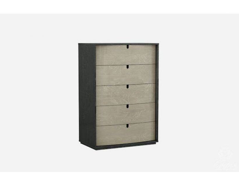 Зручний та місткий комод Merida графіт беж з текстурою дерева виготовлений з МДФ з п'ятьма шухлядами у стилі модерн від виробника Софія