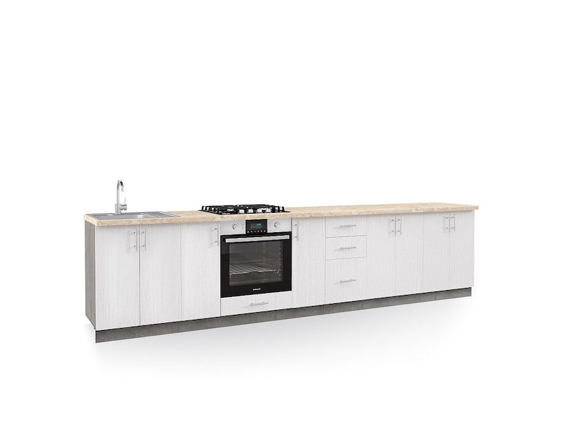 | Наполнение | У комплект кухні входить фурнітура – пластикові ручки, роликові напрямні ящиків кухні, фірмові петлі, цоколь. |