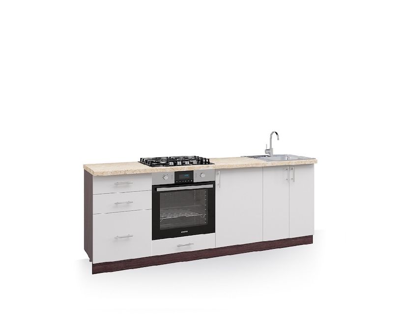 | Наполнение | У комплект кухні входить фурнітура – пластикові ручки, роликові напрямні ящиків кухні, фірмові петлі, цоколь. |