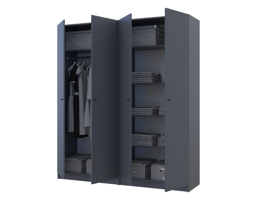 Відкрийте для себе елегантність та функціональність із комплектом шаф для одягу Doros Промо. Цей комплект із двох шаф, виконаний у стильному кольорі графіту, стане не лише практичним доповненням, а й вишуканим акцентом вашого інтер'єру. Завдяки продуманим полицям, ви зможете організувати свій одяг та аксесуари так, щоб завжди мати їх під рукою.