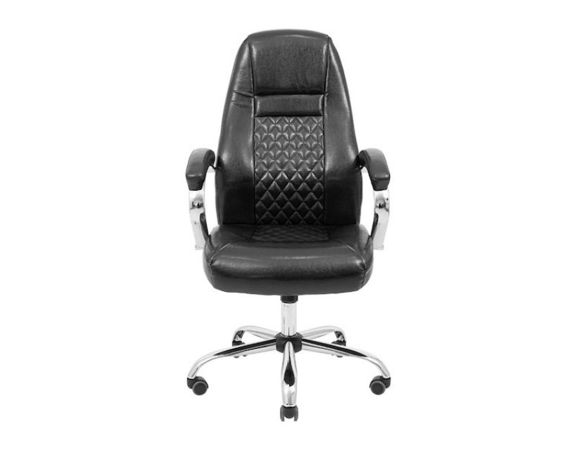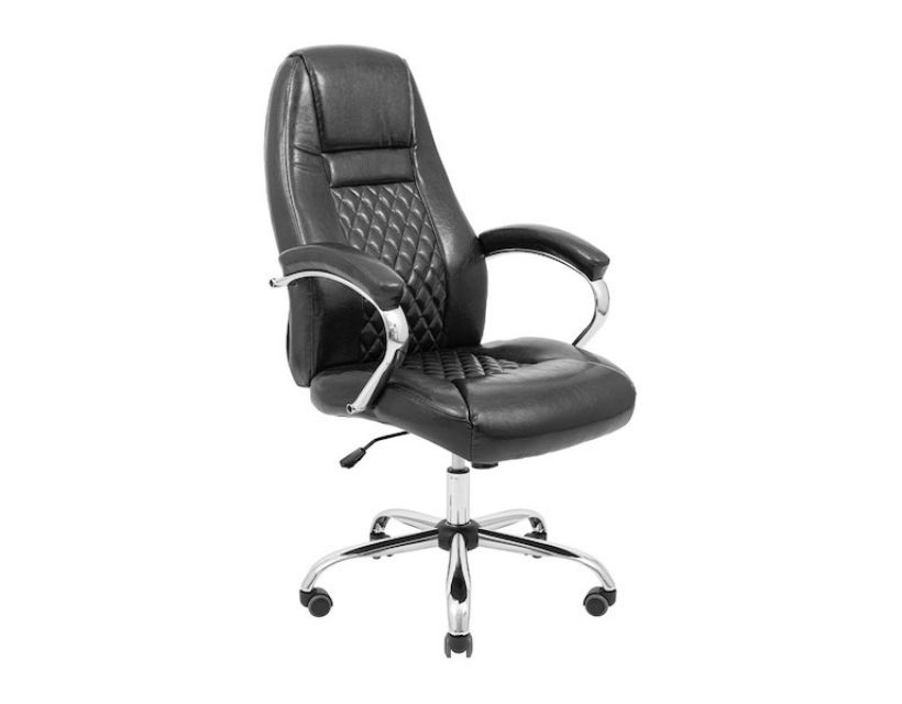 Оббивка крісла виконана у якісній еко-шкірі класичного чорного кольору.