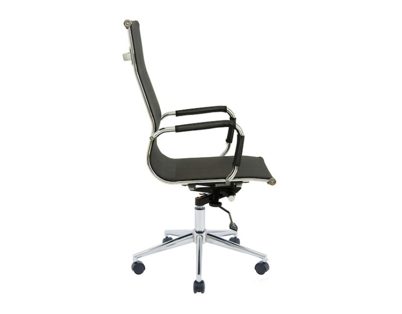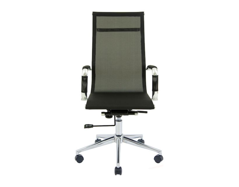 Поверхня спинки має плавні вигини що сприятиме правильному положенні спини. Оббивка з еластичної та зносостійкої сітчастої нейлонової тканини чорного кольору дозволяє максимально комфортно розташовуватися в кріслі, не втомлюючись від тривалого перебування в ньому.