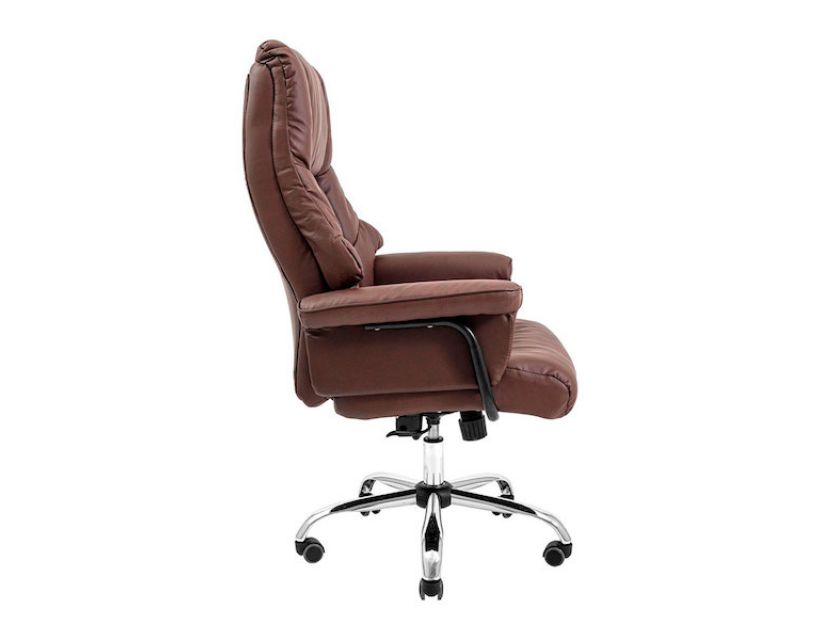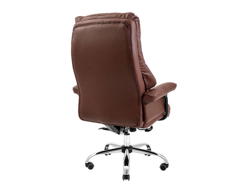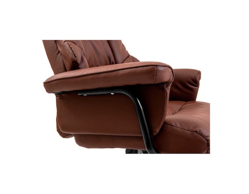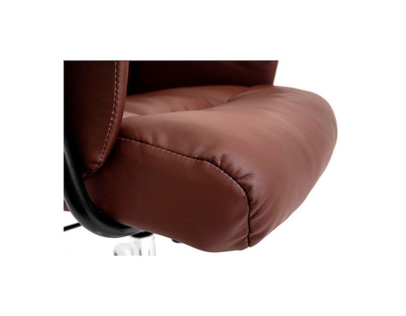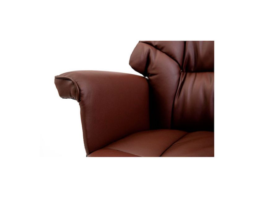 Оббивка крісла виконана у якісній еко шкірі класичного коричневого кольору.