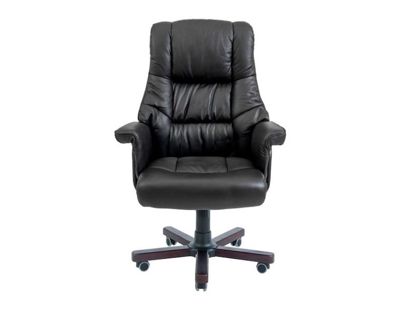 Оббивка крісла виконана у натуральній шкірі класичного чорного кольору.