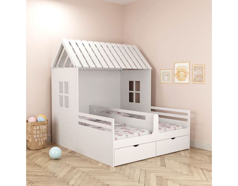 Розміри: Висота 1600 мм. Довжина 1632 мм. Глибина 1932 мм. Спальне місце 800 мм * 1900 мм. Колір та розмір можна підібрати індивідуально за бажанням клієнта. Завдяки величезному вибору колірного рішення ви підберете саме ту модель, яка сподобається вашій дитині. Таке ліжко вразить вас своєю компактністю, місткістю та практичністю. Колір та розмір можна підібрати індивідуально за бажанням клієнта. Цей товар виготовляється на замовлення. Термін виготовлення залежить від завантаженості заводу. Кольори на вибір в асортименті. Можливе виготовлення у комбінації з кількох кольорів. Одноярусне ліжко будиночок для двох дітей з висувними ящиками в низу ДКД 211 Діти люблять грати в будиночки. Свій власний простір, відокремлений від дорослих, затишний маленький світ, де весело та безпечно. Така модель ліжка - це комфортне спальне місце та ігрова зона. Внизу розміщені висувні ящики для білизни та речей. Все для вашого комфорту. Бічні стійки виконані з матеріалу МДФ Колір та розмір можна підібрати індивідуально за бажанням клієнта. Додатково до базової моделі ми можемо встановити для зручності: ✔Додатковий ортопедичний матрац. ✔ Також рекомендуємо Вам вибрати постільну білизну до ліжечка ТУТ Ціну на додаткові позиції уточнюйте у менеджера.