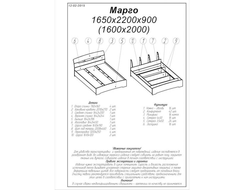 | Висота, мм ліжка з урахуванням узголів'я | 90 |