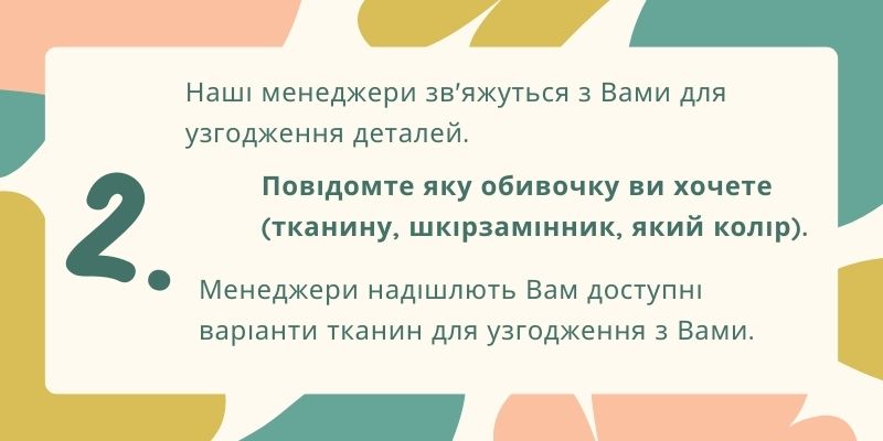 На сайті вказана ціна в оббивці матеріалами "Категорії 1" (вартість оббивної тканини до 5 $). При оформленні замовлення вказуйте в примітці колір і тип матеріалу, або погоджуються з менеджером. При виборі оббивки інших категорій, вартість розраховується індивідуально.