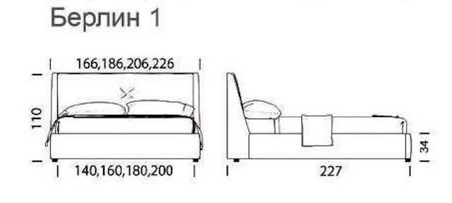 Ліжко з м'якою оббивкою і високим узголів'ям. В якості основи спального місця використовується підйомний металевий каркас з ортопедичними буковими ламелями (відстань між ламелями 2,5-3см.). Каркас піднімається вгору від підніжжя на 60 ° за допомогою пневматичного підйомного механізму на газових амортизаторах, що забезпечує доступ до об'ємного білизняному скриньки. Підйомний механізм працює дуже плавно, безшумно і витримує великі навантаження.
