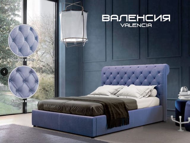 Ліжко Greensofa Люкс Валенсія - модель двоспальному ліжку в стилі модерн. Каркас виконаний з масиву дерева, сосна, покритий м'якою оббивкою спинки - тканина / штучна шкіра.