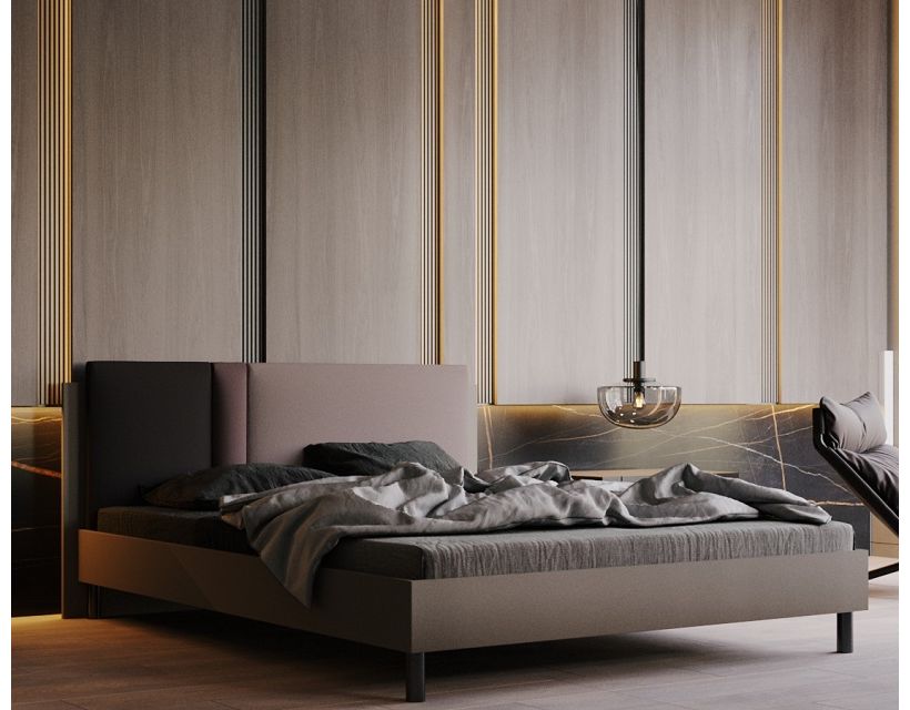 Геометрично правильне і стильне ліжко підходить для будинку як в сучасному стилі, як і в класичному. Металевий каркас пофарбований порошковою фарбою з ДСП. Підстава під матрац букові ламелі шириною 53 мм. Ширина між ламелями 65мм.