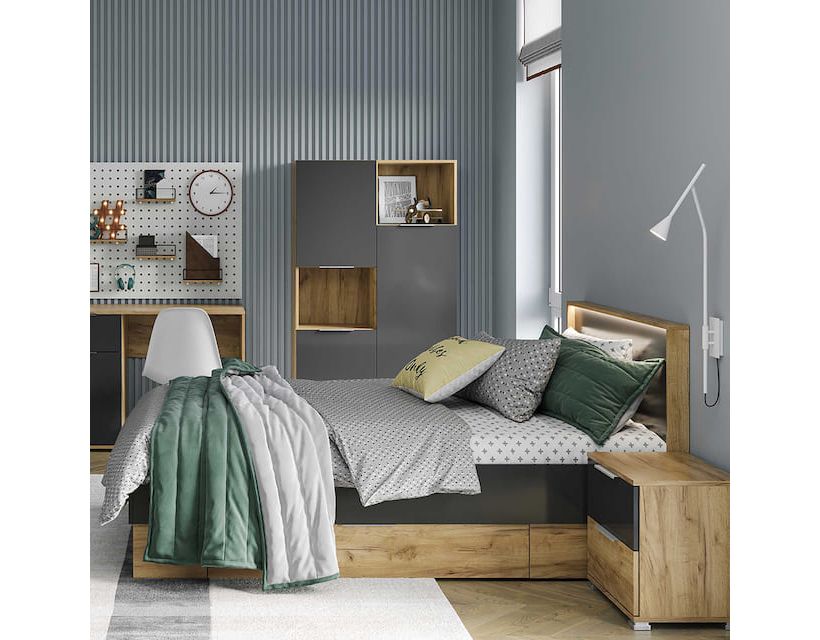 | Особливості | LED підсвічування в узголів'ї. У підніжжя - три відкриті функціональні ніші. Дві висувні ящики для білизни. |