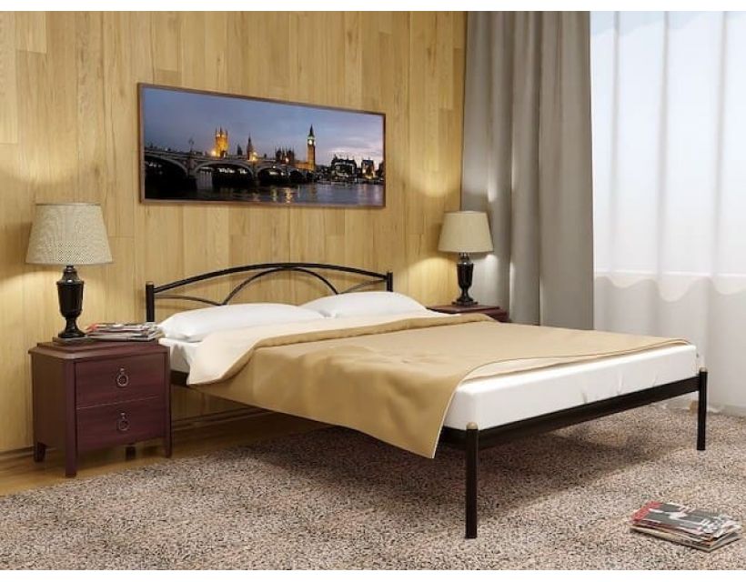 Справжній і дуже зручний відпочинок гарантований лише на придатних меблях, які дадуть своєму власнику славні сни та досконалу розслабленість. Такою і вважається дана модель. Вона стане прекрасним обранням для вашої спальні, внаслідок надійності системи і прекрасного дизайну, якому сприяє металева спинка, яка виконана у вигляді дуг. Корпус ліжка виготовлений з особливого металевого металу, внаслідок якого вона зберігає легкість і мобільність, причому, не втрачаючи надійності і високої фортеці. Доповнена особливою опорою основа двоспального ліжка здатна перенести величезні навантаження та важку вагу користувача. Сама опора виготовлена у вигляді металевої решітки, що складається з двох половин. Все це гарантує виробу неймовірно тривалий термін служби.
