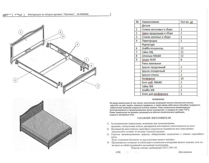 Виконане ліжко з щита бука, узголів'я - з МДФ в дубовому шпоні, в якості покриття застосовується гіпоалергенний лак італійського виробництва.