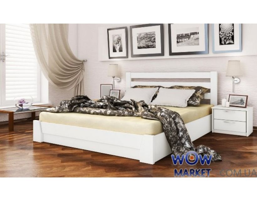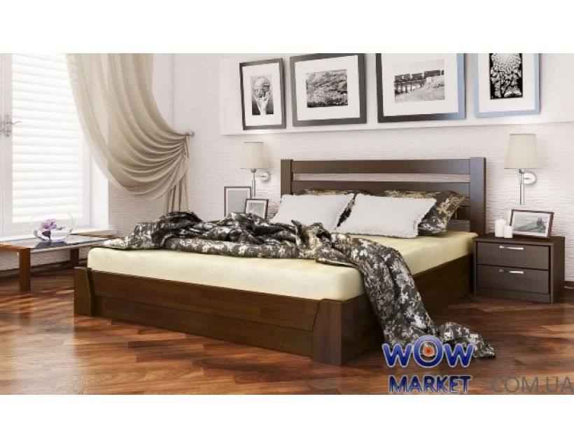 Двоспальне ліжко з природного дерева з підйомним пристосуванням спальної ділянки для заощадження білизни, комфортне та малогабаритне ліжко, доступна вартість, висока якість. Ліжко Селена з підйомним механізмом виготовлене з природного дерева - бука, ліжко відмінно впишеться в спальню і допоможе, отримати насолоду пам'ятними хвилинами гармонії. Дерево бука тверда, щільна і пластична, бук дуже міцне і міцне дерево, що цілком підходить для виготовлення меблевого щита. Дерево просто піддається обробці, тому дуже просто вибрати ліжко під вашу спальню. Ліжко Селена це елегантне ліжко для людей рішучих у собі. Унікальний дизайн ліжка чудово прикрасить кожну житлову кімнату та створить неповторний та унікальний характер. Дерев'яне ліжко з підйомним механізмом Селена хороша альтернатива ліжкам з висувними ящиками для білизни. Шлях у нішу до ліжка з підйомним механізмом дуже простий: досить підняти каркас, а потім газові амортизатори піднімуть каркас з матрацом. Ліжко з підйомним механізмом Селена можна поставити в такому місці, де користуватися ліжком з висувним ящиками для білизни, не зручно або просто неможливо. Вдалий підйомний механізм ліжка замінить шафу.