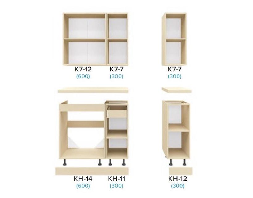 | Наполнение | У комплект кухні входить фурнітура – пластикові ручки, роликові напрямні ящиків кухні, фірмові петлі, цоколь. |