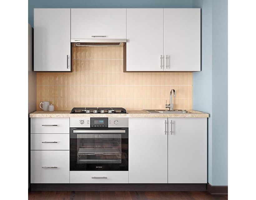 | Наполнение | У комплект кухні входить фурнітура – пластикові ручки, роликові напрямні ящиків кухні, фірмові петлі, цоколь. |