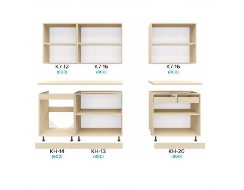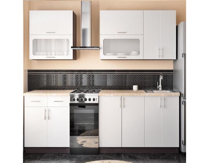 | Наполнение | У комплект кухні входить фурнітура – пластикові ручки, роликові напрямні ящиків кухні, фірмові петлі, цоколь. |