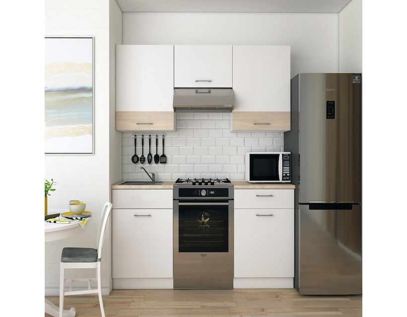 Модульна кухня Лея – це елегантне поєднання стилю та функціональності, яке перетворить вашу кухню на затишне місце для приготування їжі та сімейних зустрічей. Виготовлена в класичному білому кольорі з елементами дуба сонома, ця кухня не тільки тішить око, а й забезпечує максимальну практичність завдяки продуманій модульній системі. Завдяки своїм компактним розмірам кухня Лея ідеально підходить для будь-якого інтер'єру. , доповнюючи його сучасний дизайн. Виберіть кухню, яка стане не лише функціональним простором, а й стильним акцентом вашого будинку. Не втрачайте можливості створити комфортне середовище для кулінарних шедеврів!