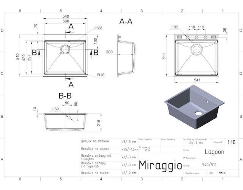 | Комплектація | Кухонная мийка, сифон одинарний з переливом, кріплення, документація |