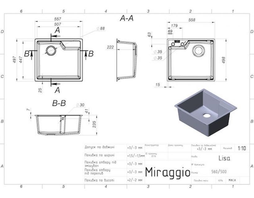| Комплектація | Кухонная мийка, сифон одинарний з переливом, кріплення, документація |