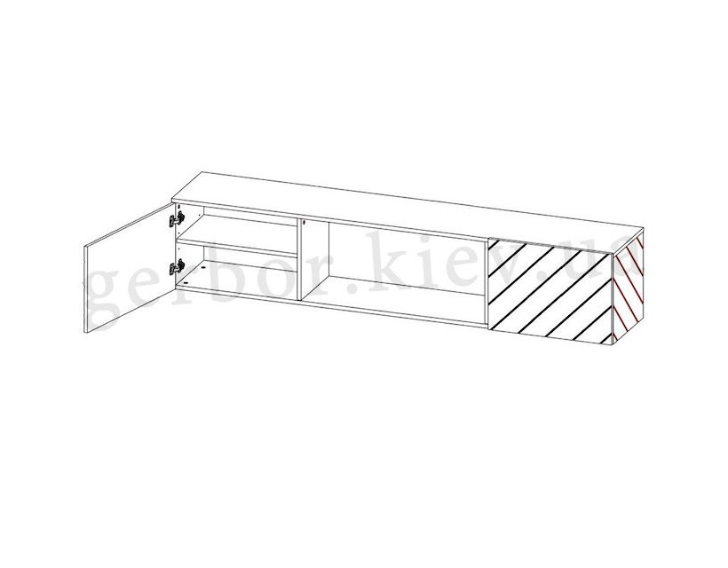 Тумба ТВ із електрокаміном LUXE EF CAMA MEBLE – навісна тумба під телевізор Люкс Еф Кама від польської фабрики Cama Meble із двома розстібними дверима. Корпус виготовляється із ламінованої ДСП товщиною 16 мм у чорному кольорі, фасад та боковини – з МДФ 16 мм, ламінованою плівкою ПВХ у чорному глянці. Двері відчиняються за виступаючий верхній край. Усередині кожного з відділень розміщено по одній поліці. Фасади прикрашені фрезеруванням у вигляді діагональних смуж. Електрокамін, розташований по центру, за допомогою пульта дистанційного керування змінює кольори та регулює температуру приміщення, охолоджуючи до 16°C або нагріваючи до 28°C. Пламя може бути червоним, синім або фіолетовим. Розміри: шир./вис./гл. - 182,6/37,5/34,5 см. Характеристики електрокаміну IF32FSB: колір: білий; електроживлення: 220-240В/50Гц; номінальна потужність: 1400 Вт-1600 Вт.