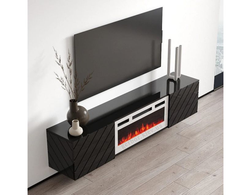 LUXE EF CAMA MEBLE Тумба ТВ навісна чорний / чорний глянець з білим електрокаміном