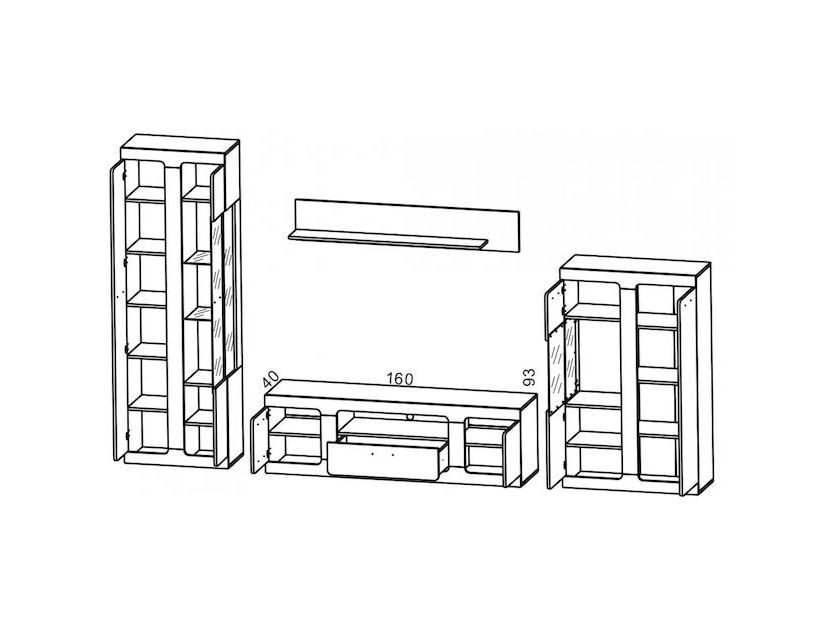 | Размер модулей | Серванты-витрины высокая – Д-65 Г-35 В-197; Серванты-витрины низкая – Д-85 Г-35 В-137; Тумба под ТВ – Д-169 Г-40 В-49; Полка – Д-140 Г-20 В-25 |