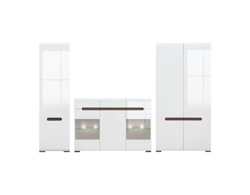 Модульна стінка для вітальні ВМК (БРВ) Ацтека N77865 Білий + Білий глянець Українська компанія "ВМК (БРВ) Україна" представляє стильний набір меблів для вітальні "Ацтека N77865" у білому кольорі з глянсовим відтінком. Чарівна краса цього комплекту складається із суворих ліній дизайну та бездоганного виконання. Головними його особливостями є світле виконання, якісні матеріали та сучасний стиль. Поєднання матеріалів корпусу та фасаду вітрини - ДСП та МДФ - забезпечує міцність та довговічність конструкції. Сучасний стиль підкреслюється завдяки інтегрованому LED підсвічуванню, яке робить меблі більш ефектними і незабутніми. Колір виконання - білий з глянцем - дозволяє легко вписати меблі в будь-який інтер'єр, роблячи його яскравим та сучасним. Стінка складається з модулів: Тумба-вітрина з підсвічуванням ВМК (БРВ) Ацтека KOM2W1D3S/10/15 N Білий + Білий глянець (GRB-1661) - 1 шт. Тридверна з трьома ящиками. Бічні дверцята оснащені загартованим склом, за ними розташовано по одній скляній полиці з підсвічуванням. Довжина: 150 см Висота: 104 см Глибина: 41 см Шафа пенал для одягу ВМК (БРВ) Ацтека SZF1D/21/6 N Білий + Білий глянець (GRB-1654) – 1 шт. Однодверний. Усередині розташовані дві полиці та висувна штанга для одягу. Довжина: 60 см Висота: 210 см Глибина: 41 см Шафа розстібна для одягу ВМК (БРВ) Ацтека SZF2D/21/11 Білий + Білий глянець (GRB-1655) - 1 шт. Дводверний. Усередині розташовані дві полиці та штанга для одягу. Довжина: 105 см Висота: 210 см Глибина: 60 см