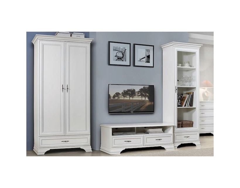 Модульна стінка для вітальні ВМК (БРВ) Кентуки N77794 Білий альпійський Занурьтесь у безмежну зручність та естетичну насолоду з набором меблів у вітальню Кентукі N77794 Білий альпійський ВМК (БРВ) високої якості від українського виробника. Благородний білий альпійський колір надає неймовірну свіжість і світлість вашому інтер'єру, створюючи атмосферу спокою та гармонії. Товар включає кілька важливих складових для організації вашого житлового простору: шафа платтяна, тумбу, вітрину та комод з колекції Кентукі. Стінка складається з модулів: Шафа розстібна в спальню ВМК (БРВ) Кентуки SZF2D1S Біла альпійська (GRB-1767) - 1 шт. Дводверний з висувною скринькою. Усередині встановлена штанга для вішалок. Використовуються металеві кулькові напрямні повного висування. Довжина: 99,5 см Висота: 210 см Глибина: 61 см Пенал-вітрина ВМК (БРВ) Кентуки REG1W1S Білий Альпійський (GRB-1775) - 1 шт. Дводверна з висувною скринькою. Двері обладнані скляними вставками. Усередині встановлені три полиці. Використовуються металеві кулькові напрямні повного висування. Довжина: 99,5 см Висота: 210 см Глибина: 44 см Тумба під телевізор ВМК (БРВ) Кентуки RTV2S Білий Альпійський (GRB-1952) - 1 шт. З двома нішами та двома ящиками. У задній стінці кожної ніші передбачено отвір для дротів. Використовуються металеві кулькові напрямні повного висування. Довжина: 124,5 см Висота: 47 см Глибина: 54 см Комод до спальні ВМК (БРВ) Кентуки KOM4S Білий альпійський (GRB-1499) - 1 шт. із чотирма ящиками. Використовуються металеві кулькові напрямні повного висування. Довжина: 94,5 см Висота: 90,5 см Глибина: 44,5 см Виготовлені з ЛДСП і МДФ, ці вироби мають високу міцність і зносостійкість, служать вам довгі роки і підкреслюють сучасність вашого стилю. Набір меблів у вітальню Кентукі N77794 Білий альпійський ВМК (БРВ) вражає своїм яскравим та привабливим дизайном, елегантно вписуючись у будь-яку вітальню, незалежно від того, наскільки суворий та виразний ваш смак. Це поєднання компактності та функціональності, створення універсальності та простоти використання.