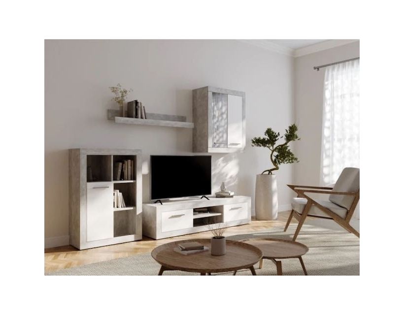 Модульна стінка для вітальні ВМК (БРВ) Шакіра Бетон + Німфея альба Модульна стінка для вітальні Шакіра Бетон/німфея альба ВМК (БРВ) Україна - ідеальне рішення для тих, хто цінує комфорт, стиль та функціональність. Вона виготовлена з якісного матеріалу – ЛДСП, який забезпечує довговічність та міцність конструкції. Модульна стінка для вітальні виконана в сучасному стилі, що дозволяє легко вписатися в будь-який інтер'єр. Колір - бетон/німфея альба - надає їй вишуканості та елегантності. Розміри загальні: Довжина – 210 см; Глибина – 40 см; Висота – 190 см. Стінка складається з модулів: Стелаж REG1Do – 1 шт. Чотири відкриті відділення, одні двері, всередині – одна полиця. Довжина: 63,1 см Висота: 92,2 см Глибина: 30 см Тумба ТБ RTV2K - 1 шт. Два відкритих відділення, два відкидні двері. Довжина: 140 см Висота: 34 см Глибина: 40 см Вітрина навісна SFW1W1DP – 1 шт. Одні двері, всередині – три полиці. Довжина: 63,1 см Висота: 78 см Глибина: 30 см Полиця POL/100 - 1 шт. Максимальне навантаження – 5 кг. Довжина: 100 см Висота: 15 см Глибина: 17 см