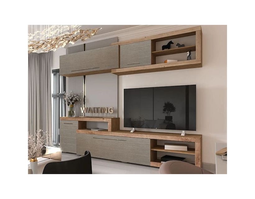 Модульна стінка для вітальні ВМК (БРВ) Вероніка Готланд + Грейж тессі Модульна стінка для вітальні Вероніка Готланд/грейж тесі ВМК (БРВ) Україна - стильна та функціональна меблева стінка для сучасного інтер'єру. Виготовлена у найкращих традиціях українського меблевого виробництва, поєднує у собі високу якість та витончений дизайн. Розміри загальні: Довжина – 245 см; Глибина – 42 см; Висота – 190 см. Стінка складається з модулів: Тумба ТВ з надставкою RTV1D1K – 1 шт. Зліва – закрите відділення з полицею всередині, по центру – відкидні двері, праворуч – чотири ніші. Шафа навісна SFW1D1K - 1 шт. Зліва - двері з відкриванням вгору, всередині два відділення, праворуч - закрите відділення з полицею всередині та дві ніші. Максимальне навантаження на шафу 20 кг. Унікальне колірне рішення - поєднання тонів Готланд і грейж тессі - надасть особливої вишуканості та шарму. Матеріал корпусу та фасаду - ЛДСП, забезпечує довговічність та надійність конструкції. У комплект входить стінка для вітальні, виконана в сучасному стилі, що дозволяє вписатися в будь-який інтер'єр.