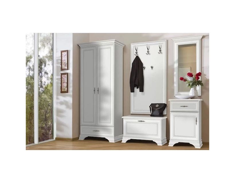 Набір меблів в передпокій ВМК (БРВ) Кентукі N77805 Білий альпійський Елегантний набір меблів для передпокою Кентукі N77805 є ідеальним рішенням для любителів сучасного дизайну та функціональності. Виконаний у білому альпійському відтінку, він додає світлості та легкості приміщенню, роблячи ваш будинок приємним та затишним місцем для життя. Матеріал корпусу та фасаду - ЛДСП/МДФ, що забезпечує надійність та довговічність конструкції. Колекція Кентукі втілює свіжий і динамічний підхід до дизайну меблів. Набір складається з модулів: Шафа розстібна в спальню ВМК (БРВ) Кентуки SZF2D1S Біла альпійська (GRB-1767) - 1 шт. Дводверний з висувною скринькою. Усередині встановлена штанга для вішалок. Використовуються металеві кулькові напрямні повного висування. Довжина: 99,5 см Висота: 210 см Глибина: 61 см Вішалка настінна ВМК (БРВ) Кентуки WIE/75 Білий Альпійський (GRB-1774) - 1 шт. Вішалка настінна. Обладнана п'ятьма металевими гачками. Довжина: 75 см Висота: 144 см Глибина: 3 см Тумба для взуття ВМК (БРВ) Кентук SFK1B Білий альпійський (GRB-2002) - 1 шт. Однодверна з відкидними дверима. Усередині розташована одна полиця. Довжина: 80 см Висота: 50 см Глибина: 35 см Тумба в передпокій ВМК (БРВ) Кентуки KOM1D1SL/P Білий Альпійський (GRB-1981) - 1 шт. Однодверна з ящиком. Двері відчиняються в ліву або праву сторону в залежності від установки петель при складанні. Усередині встановлена одна полиця. Використовуються металеві кулькові напрямні повного висування. Довжина: 54,5 см. Висота: 83 см. Глибина: 34,5 см. Дзеркало настінне ВМК (БРВ) Кентуки LUS/50 Білий альпійський (GRB-1743) - 1 шт. Настінне. Довжина: 58,5 см Висота: 110 см Глибина: 6,5 см Комплект забезпечує зручність та порядок у Вашому передпокої, дозволяючи оптимально використовувати простір.