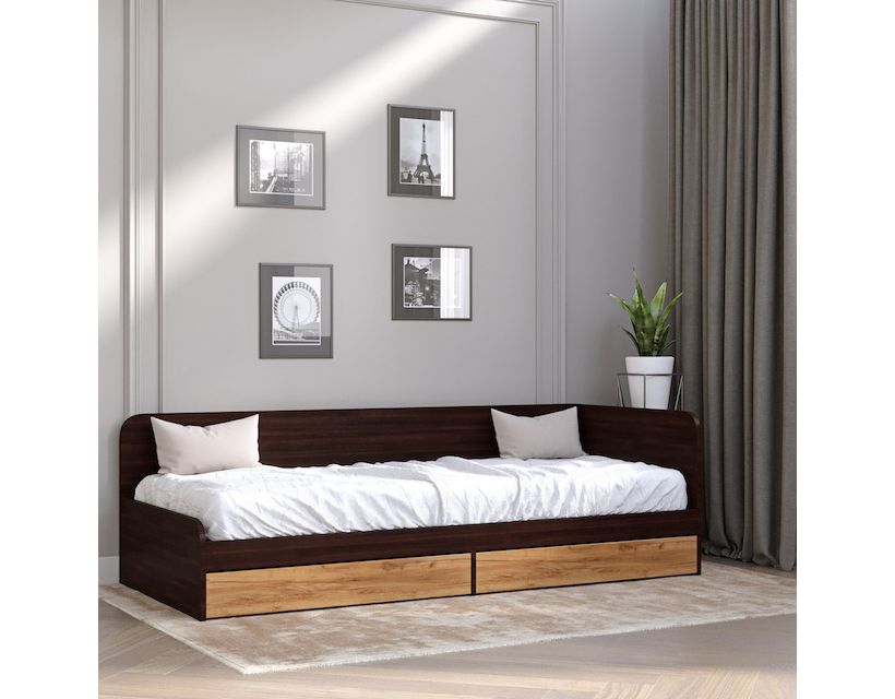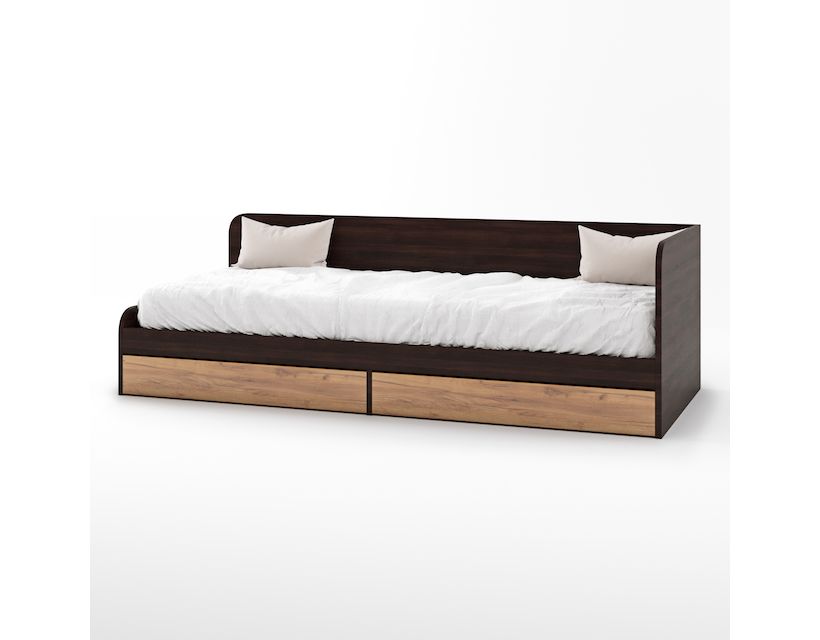Односпальне ліжко із ящиками Еверест Соната-800 80х190 см венге темний + дуб крафт золотий (DTM-2107)