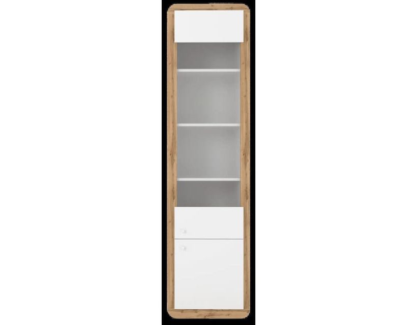 Пенал-вітрина Гербор Скі REG1W1D Німфея альба/Дуб аппалачі Вітрина Скі REG1W1D від українського виробника Гербор створена за останніми трендами сучасного дизайну. Прекрасно впишеться в інтер'єр будь-якої вітальні або їдальні, додавши кімнаті особливого стилю та вишуканості. Колір виробу - німфея альба в поєднанні з дубом аппалачі, який надасть вашому інтер'єру більше світлості та легкості. Розміри вітрини - 53 см завдовжки, 44 см завглибшки і 199 см заввишки. Такі розміри дозволяють оптимально використовувати місце кімнати. Вітрина оснащена одними дверцятами, що робить її ще більш функціональною. ДСП матеріал корпусу та фасаду підкреслює якість та надійність виробу. Крім цього, цей матеріал відрізняється довговічністю та високою стійкістю до механічних пошкоджень. Якщо ви цінуєте якість, стиль та функціональність, то Вітрина Скі REG1W1D – це саме те, що вам потрібно. Це не просто предмет меблів, це особливість вашого інтер'єру, здатна наголосити на вашому унікальному смаку. Характеристики: Висота: 199 см; Глибина: 44 см; Довжина: 53 см.