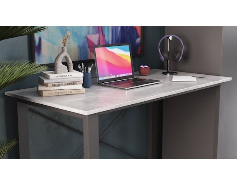 Відкрийте для себе письмовий стіл Ferrum-decor Драйв, що поєднує елегантний дизайн та практичність. Його чорна металева конструкція надає стійкості та надійності, а стильна поверхня з ДСП під бетон створює унікальний вигляд, що гармонійно впишеться в будь-який інтер'єр. Цей стіл стане чудовим доповненням до вашого робочого простору, забезпечуючи комфорт та натхнення для продуктивної роботи.