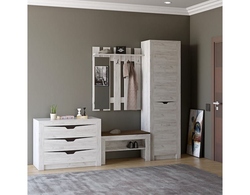 Передпокій Еверест Ліберті 4 (модульний - 5 елементів) шафа-пенал правий, дуб крафт білий (DTM-2534) в інтернет магазині меблів "Меблі Даром"